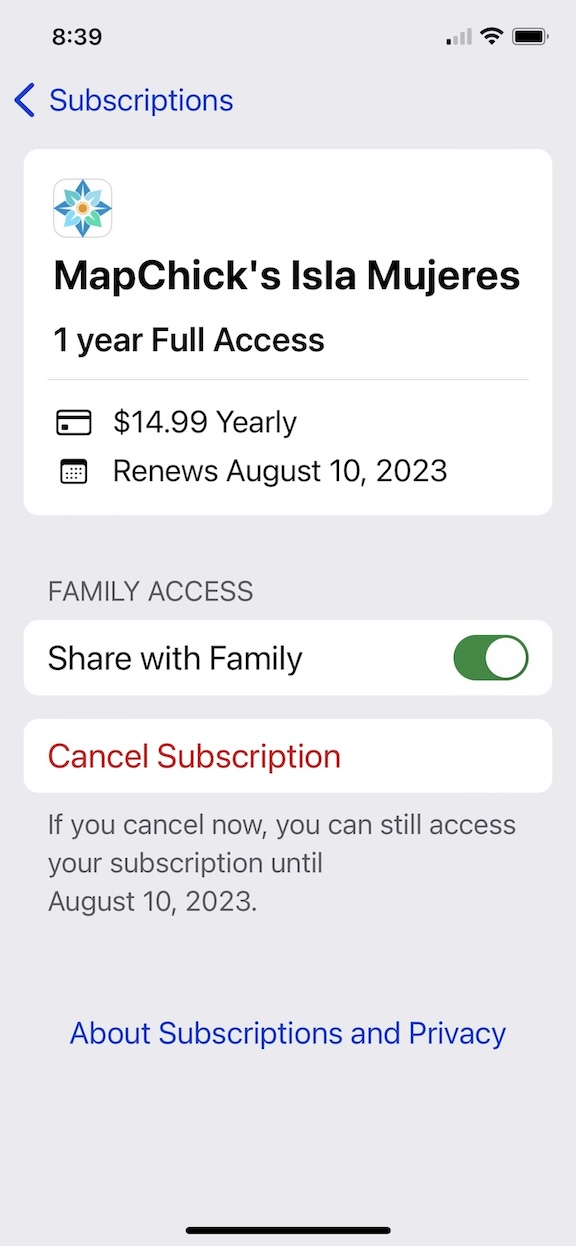 Tap Cancel Subscription in red and your subscription will be cancelled.