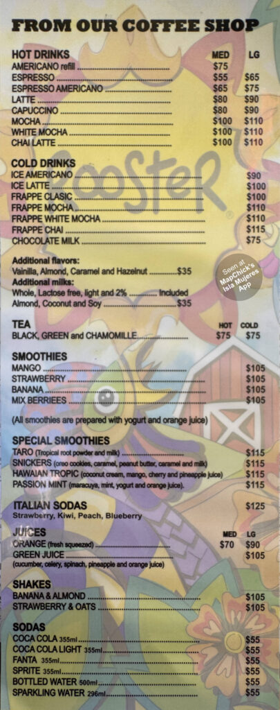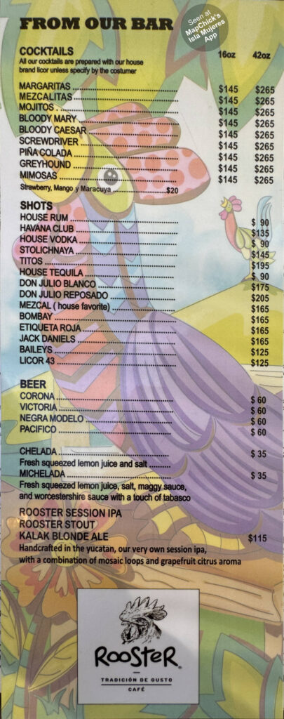 Rooster coffee/bar menu 2 of 2